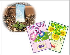 観察用の植物(野菜)の種がついたカード付き。カードを土に挿すだけだから、すぐに観察日記が始められます。